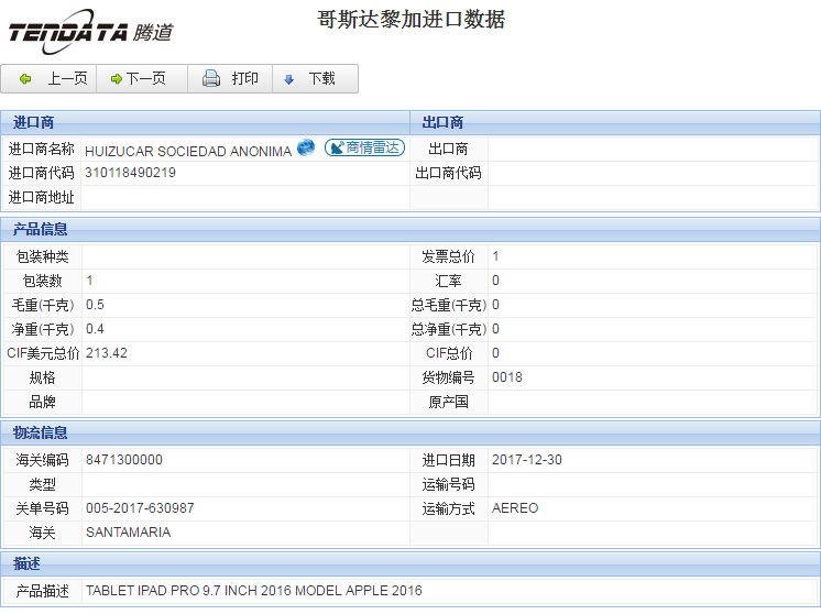 您当前的位置:DDpay钱包海关数据样本下载 >> 哥斯达黎加海关数据 >> 返回DDpay钱包